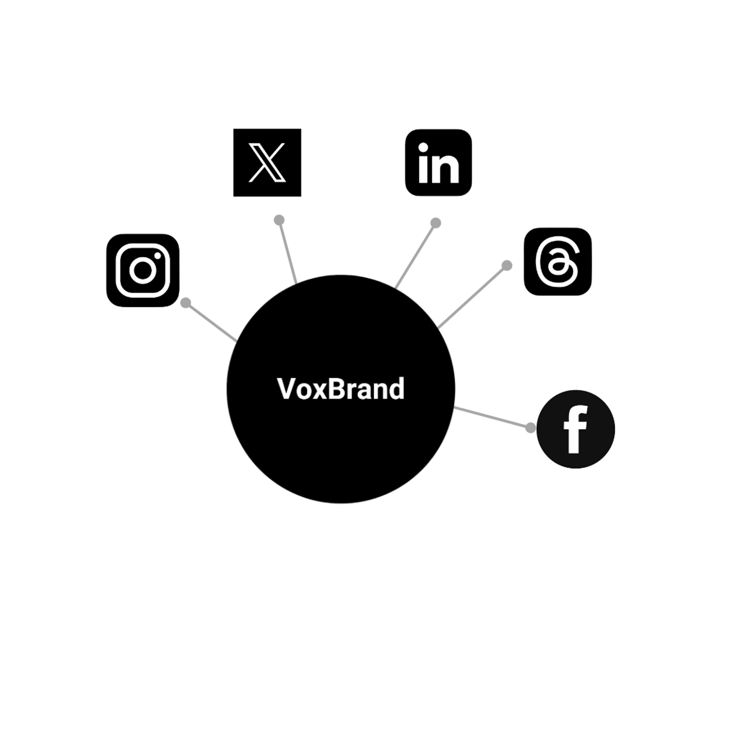 VoxBrand delivers ready-to-post content tailored to your unique voice. Manage and share across platforms seamlessly, and stay connected with AI-driven insights.